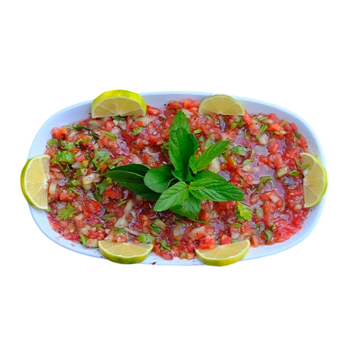 Domates, salatalık, soğan, biber ve maydanozla hazırlanan taze, hafif ve limonlu bir salata.